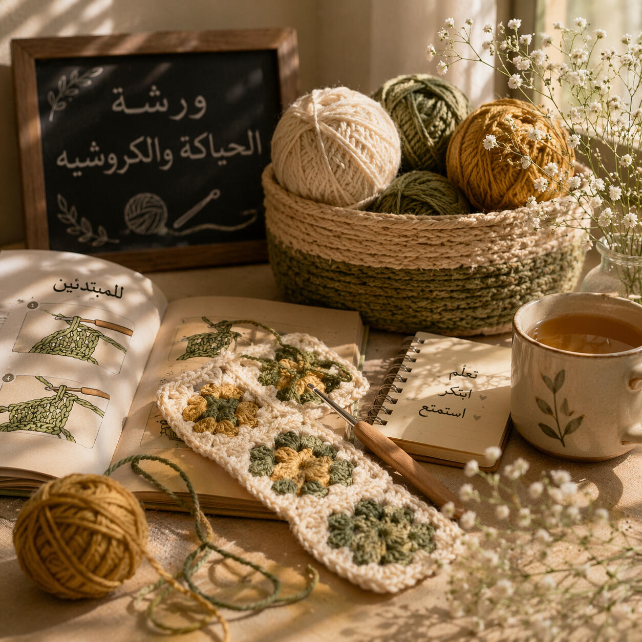 نقدّم ورشات تعليمية تناسب جميع المستويات، من المبتدئين إلى المحترفين، حيث تتعلّم أساسيات الحياكة والكروشيه خطوة بخطوة وتطوّر مهاراتك في أجواء مريحة وملهمة. تشمل ورشاتنا برامج للمبتدئين، وورشات متقدمة لتطوير مشاريع أكثر احترافية، بالإضافة إلى جلسات خاصة مخصصة حسب طلبك أو مجموعتك